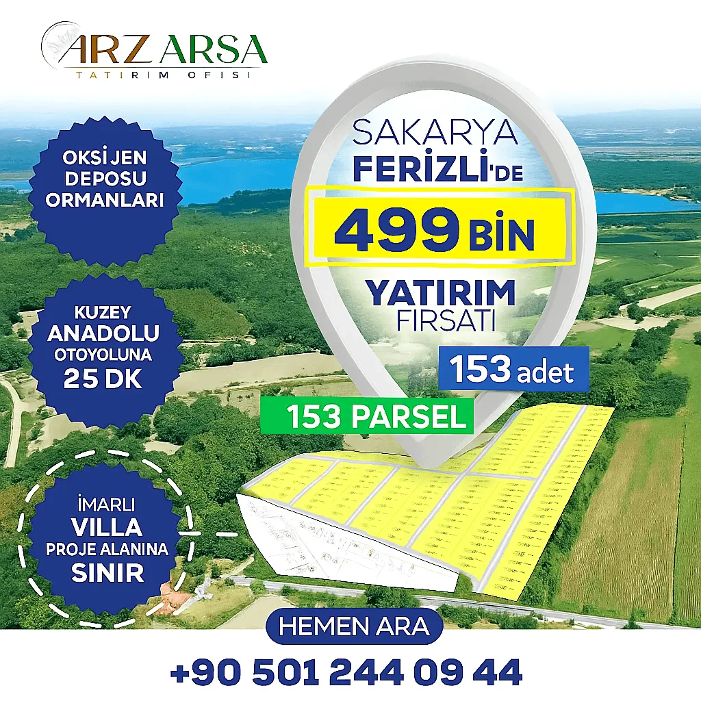 - Kuzey Anadolu Otoyolu'na 25 Dakika Uzaklık: Otoyola yakın konumu ile Sakarya Ferizli'de bulunan arsa projemiz değerini katlıyor