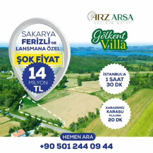 Sakarya Ferizli'de yer alan Gölkent Projemiz, denize yakın konumuyla dikkat çekiyor.