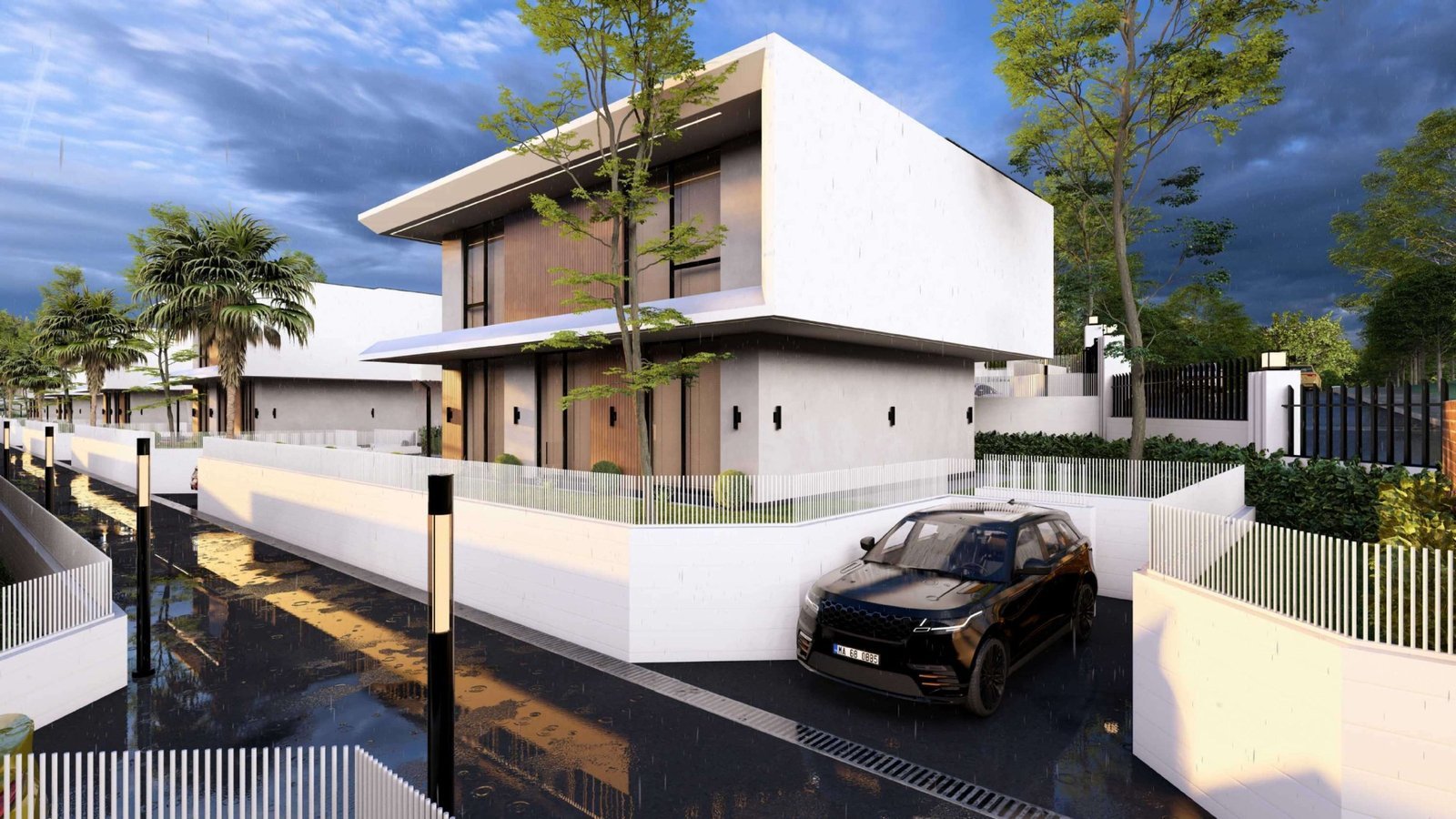 Geleceğin teknolojisine hazır olun. Her villada elektrikli araç şarj istasyonu yer alıyor.